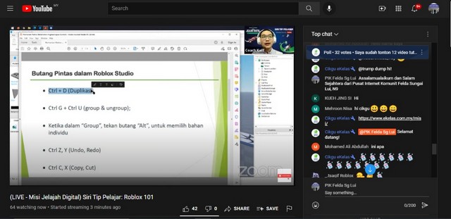 10 Oktober 2021 | Aktiviti Terkini09 Oktober 2021 - Pusat Ekonomi Digital Komuniti Felda Sungai Lui telah mengikuti kelas secara langsung LIVE Misi Jelajah Digital Sejam bersama Pakar STEM: Coding menggunakan Roblox Studio yang dipengerusikan oleh Cikgu Rodzmier.
