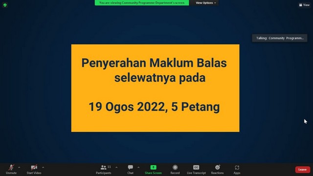 Program berlansung selama 1 jam bermula pada jam 03.00 petang dan berakhir pada jam 04.00 petang.